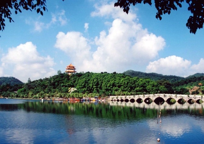 虎英森林公園坐落于東莞黃旗山麓,東城新城市中心區(qū),毗鄰峰景高爾夫球場、新世界花園、愉景花園,占地900多畝,湖水面積290畝?;⒂⒔家肮珗@聚百山之石,精心構(gòu)思,建成了雕塑園、虎英閣、云雨橋、活力廣場、羅馬柱廊、情人島、露天游泳場、歡樂谷燒烤園、兒童樂園等豐富景點(diǎn)。置身虎英郊野公園讓您摒棄都市喧囂,盡賞田園美景。