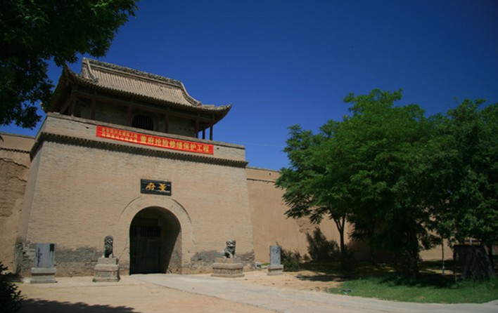 董福祥隨帶著清朝廷賜銀四千兩及親丁三千人,回到金積堡,買下鄉(xiāng)紳郭舉人的一片湖塘。1902年(光緒二十八年)開始了建蓋“宮保府”的龐大工程,歷時三年而成。初建是耗銀數(shù)十萬兩,動用人工三百萬個,耗糧250萬千克,占地百余畝。整體建筑有內(nèi)寨、外寨、護府河和主體建筑群落四部分組成,現(xiàn)僅存內(nèi)寨和主體建筑。