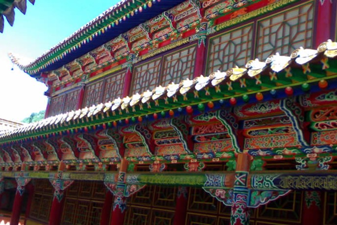 可是到了雍正二年,因為參與了羅卜藏丹津反清叛亂,宏偉的寺院竟然被官軍付之一炬,寺內(nèi)僧人死走逃亡。盡管在雍正十年,皇帝為了重當(dāng)?shù)乩?dāng)?shù)乩锝潭囊庠?,版?quán)所有山東聊城聊之旅國際旅行社有限公司,轉(zhuǎn)載必究!欽命宣修寺院,并賜額“佑寧寺”。但這座可與任何恢宏寺院比肩的佛教圣寺再也沒有恢復(fù)年的規(guī)模。在空前絕后的“文革”中,這座古寺再次被焚毀,這一次比雍正年間那次兵火更加徹底,寺內(nèi)文物幾乎蕩然無存?,F(xiàn)在,經(jīng)過小規(guī)模修復(fù)的寺院只剩下稀稀落落的數(shù)十間院落和并不能稱為宏偉的幾座經(jīng)堂散處于山谷間,在北山林場的映襯下自在場然,似乎依然在回味著數(shù)百年來的那兩場令人心酸的大火所帶來的凄涼悲慘。