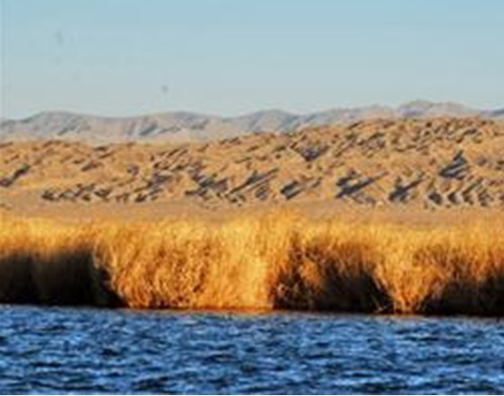 “克魯克”是蒙古語,意思是“多草的芨芨灘、水草茂美的地方”。她位于柴達木盆地的東部,屬于微咸性淡水湖,水色清澈、湖面平靜,景色綺麗旖旎。 每年初春,克魯克湖的冰開始融化時,成群的黑頸鶴、斑頭雁、魚鷗、野鴨等珍禽,從遙遠的東南亞諸島飛到這里筑窩壘巢、生兒育女。黑頸鶴喜歡在克魯克湖邊沼澤地和蘆葦叢中筑巢棲息,斑頭雁、灰雁則在沙丘上壘窩居住。這里是鳥的天堂,魚的故鄉(xiāng),咕咕嘎嘎的鳥鳴回蕩在蘆葦叢中,有著數(shù)不盡的快樂。