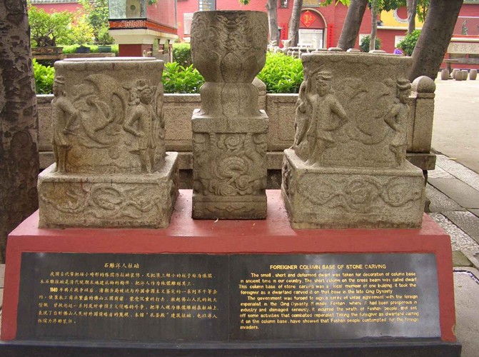 祖廟的正殿里廟內(nèi)還陳設(shè)了許多珍貴的藝術(shù)品,如70件33種兵器銅墻鐵壁儀仗,直徑1.31米的巨型銅鏡、大型銅鼎銅鐘和香爐。鐵器有大鐵鼎,鐵鼎,鐵畫(huà)等等。園內(nèi)還陳列有石刻匾額,明、清時(shí)期的石獸、碑刻唐代“貞觀二年”款棋字陽(yáng)文“禪城”,石片旁的復(fù)制品。重新組合復(fù)完的陶塑瓦脊,大量的金木雕建筑構(gòu)件,大型鐵鑄武士立像,鐵鑄瑞獸、鐵炮等等。這些陳列品集中反映了明清時(shí)期佛山高超的工藝技術(shù)。無(wú)怪乎,一些前來(lái)參觀的外國(guó)朋友將祖廟譽(yù)為“東方民間藝術(shù)之宮”。