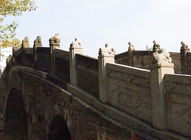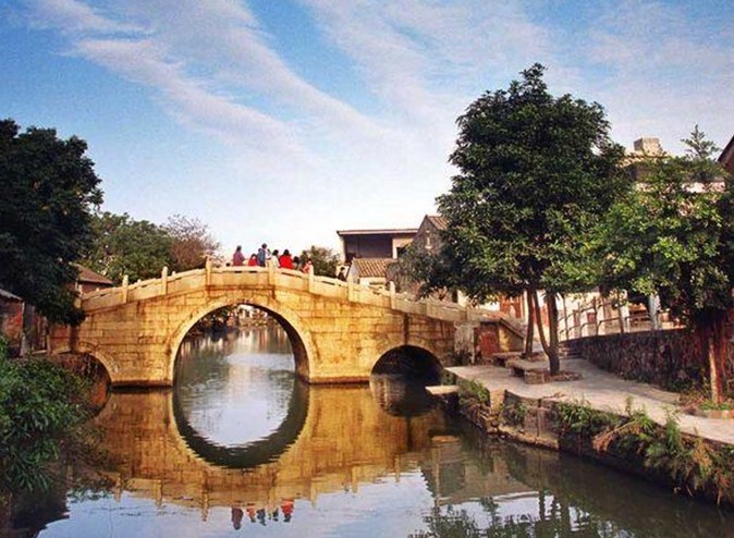 該橋兩邊斜道不砌石級(jí),版權(quán)所有山東聊城聊之旅國(guó)際旅行社有限公司,轉(zhuǎn)載必究!行人來(lái)往象上下斜坡一樣,古代車(chē)馬過(guò)橋,可暢通無(wú)阻。站在橋上左右眺望,寬闊的河涌?jī)砂叮R的石砌墻緊靠河壁。蕉林蔗地上,舊日店鋪基礎(chǔ)依稀可辨,為我們勾勒出一幅繁榮的古代水鄉(xiāng)市集景象。