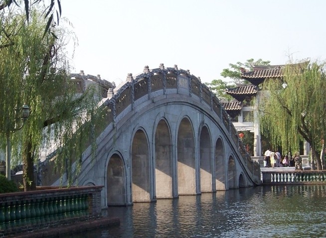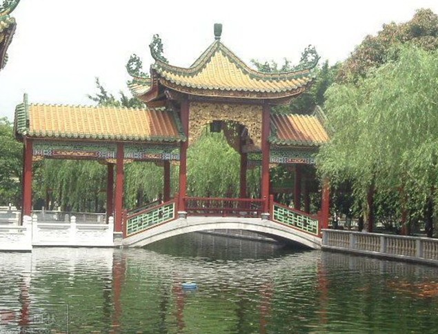 番禺寶墨園內(nèi),綠意盎然,水景可謂一絕。荔景灣、清平湖、寶墨湖與千米長河貫通合抱,水清如鏡,涓流不息,另有30多座石橋,橫跨旖旎河湖之上。若駕畫舫輕舟,仿佛置身于蓬萊仙島之中。湖面上,青水瀾瀾;湖周圍,綠柳侵煙;錦鯉千千紅浪涌,楊柳依依惹人憐。此外,紫竹園里的紫竹溪,還專供小孩玩水觀魚,更是兒童的歡樂天地。