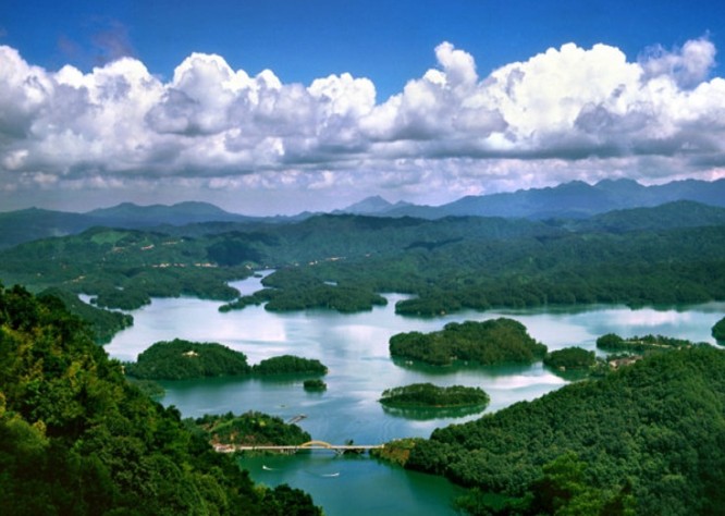 流溪河國(guó)家森林公園是經(jīng)林業(yè)部批準(zhǔn)建立的首批國(guó)家十大森林公園之一,總面積8831公頃,其中流溪湖于一九五八年建成,面積1466公頃,蓄水量3.6億立方米,水深約70米,在碧波萬(wàn)傾的湖面上,分布著大小二十二個(gè)島嶼,如白玉翡翠。在公園的東南部,聳立著五指山、牛角山、雞枕山等海拔千米以上的山峰六座。其中雞枕山海拔1146.7米,是公園內(nèi)第一高峰。登高望遠(yuǎn),一派“遠(yuǎn)山時(shí)明滅”、高峽出平湖“的壯觀景象奔來(lái)眼底,使人頓覺(jué)置身仙幻奇景之中。