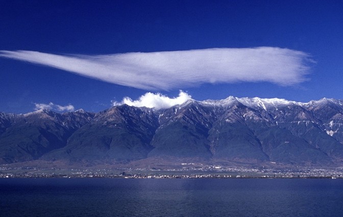 蒼山云景變幻萬(wàn)千,其中最有名的是“望夫云”和“玉帶云”。望夫云每年冬春季節(jié)常出現(xiàn)于玉局峰頂,這云出現(xiàn)后洱海隨即狂風(fēng)大作掀起陣陣驚濤駭浪,漁船不能出海,因此望夫云又被稱(chēng)為“無(wú)渡云”。玉帶云不僅嫵媚動(dòng)人,而且按白族農(nóng)諺所說(shuō),她還是豐收的預(yù)兆:“蒼山系玉帶,餓狗吃白米”。