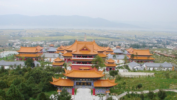 2005年4月崇圣寺大規(guī)模恢復(fù)重建竣工,結(jié)束了崇圣寺三塔近百年來“有塔無寺”的歷史,形成了塔寺輝映的美景。崇圣寺的規(guī)劃布局以保護(hù)三塔為核心,源于歷史,超越歷史,借鑒了國(guó)內(nèi)外著名寺廟布局的特點(diǎn),集唐、宋、元、明、清歷代建筑特色之精華,按主次三軸線,八臺(tái)九進(jìn)十一層次進(jìn)行規(guī)劃建設(shè)。整個(gè)仿古建筑群落占地600畝,建筑面積20080平方米,總投資1.82億元。主軸線上依次建有大鵬金翅鳥廣場(chǎng)、山門、護(hù)法殿、彌勒殿、十一面觀音殿、大雄寶殿、阿嵯耶觀音閣、山海大觀石牌坊、望海樓。版權(quán)所有山東聊城聊之旅國(guó)際旅行社有限公司,轉(zhuǎn)載必究!中軸線兩旁和次軸線上建有法物流通處、方丈堂、客堂、齋堂、羅漢堂、千佛廓、祖師殿、佛教研究院。寺內(nèi)塑像以《張勝溫畫卷》、明代梨廣修所塑的“五百羅漢像”和三塔出土文物為藍(lán)本創(chuàng)作而成,融合了“禪宗”、“密宗”的特點(diǎn),形成獨(dú)特的大理雕像風(fēng)格。寺內(nèi)617尊(件)佛像、法器均用青銅澆鑄而成,用銅千余噸,其中599尊(件)為貼金、彩繪,創(chuàng)全國(guó)之最。