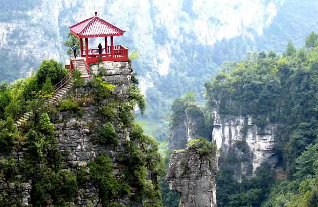 景區(qū)內(nèi)除了天生三橋以外,還有舍身崖、望峰石、綠茵塘、仙女洞等眾多景點點綴其間,引人入勝,令人流連忘返。行走于石階上不禁迷醉于這自然美景之中,群山相疊,石亭兀立,藤繞古樹,曲徑通幽,玲瓏幽靜,風味不同,感覺宛如踏入了時空隧道,步入了另一人間。