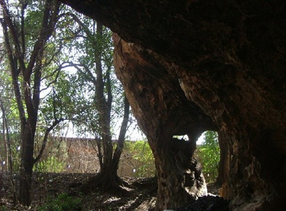 洞中右側(cè)頂穹正中,有一道亮光通向山頂,被稱為“碟大天”石孔。