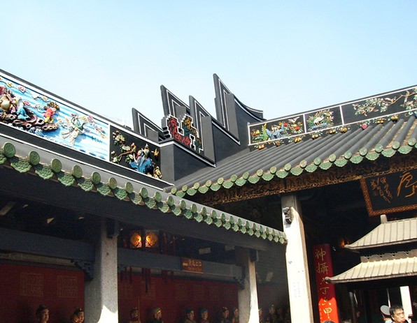 廟中的建筑雕飾,集丹青、木刻、磚雕、灰雕等各種藝術于一體,其雕飾物形象生動,栩栩如生,集中了嶺南古建筑藝術的精華,被譽為“桂殿蘭宮”。同時,整座廟宇造型各異,有方形、八角形,也有覆盆狀的。柱子有石柱、木柱,柱的截面有方形、八角形、圓形,也有轉角柱。