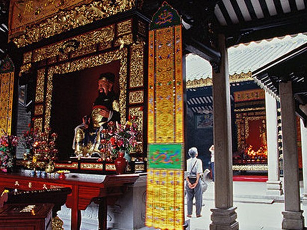 白茫茫的淫雨霏霏,淹沒了仁威廟前的荷香水塘,心靈枯槁的熱火歲月,廟堂影像形同廢墟,沒有漣漪的水,塵封了祈語如織的波紋,只剩得廟宇的灰飛,滿地愁思地搖曳、殘喘。昔日光景到了20世紀的20年代,孫科任廣州市長,鄉(xiāng)民害怕征用該廟,就將仁威廟堂改為一所學校。到建國初期,這里又辦起工農業(yè)余學校、西村第一中心小學、泮塘小學,還有部分房舍做了泮塘街派出所。60年代“鬧革命”,派出所撤銷,干脆又在廟中辦起了塑料廠……一座神廟的命運在風雨中飄搖,廢物利用似的茍且存活都不行,“破四舊”的“革命小將”們索性毫不留情地將廟里的神像砸得粉身碎骨??尚业氖?,泮塘的鄉(xiāng)民為了保護仁威廟那些精致雕刻的梁柱,連夜用灰泥將梁柱的雕刻覆蓋起來,才令這些精美的民間藝術精品得以保存下來。直到1983年8月,版權所有山東聊城聊之旅國際旅行社有限公司,轉載必究!廣州市人民政府才為仁威廟的不公待遇“平反”,公布為市級文物保護單位,現(xiàn)在,香火鼎盛的仁威廟宇正逐步恢復它歷史的原貌及尊顏。