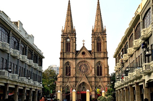 廣州石室圣心大教堂坐落于廣州市區(qū)中心的一德路,是天主教廣州教區(qū)最宏偉、最具有特色的一間大教堂。該教堂建于1863年,落成于1888年,歷時25年始建成,至今有130多年的歷史。由于教堂的全部墻壁和柱子都是用花崗巖石砌造,所以又稱之為"石室"或"石室耶穌圣心堂"、"石室天主教堂"。是省重點文物保護(hù)單位。