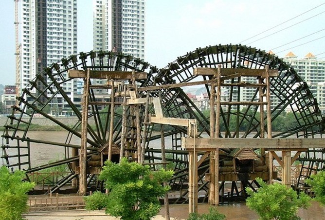 水車(chē)在中國(guó)農(nóng)業(yè)發(fā)展中有大貢獻(xiàn)。它使農(nóng)作所受的地形制約大為減輕,實(shí)現(xiàn)丘陵地和山坡地的開(kāi)發(fā)。不僅用之于旱時(shí)汲水,低處積水時(shí)也可用之以排水。