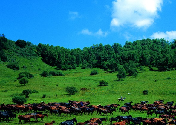 關(guān)山草原位于甘肅省天水市張家川回族自治縣和陜西隴縣之間。是我國西北部內(nèi)陸地區(qū)唯一以山地草原為主體的省級風(fēng)景名勝區(qū)。景區(qū)內(nèi)薈萃了森林、草原、河流、山巒、峽谷等自然景觀,純樸自然又不失壯觀。這里有金錢豹、林麝、錦雞等珍稀動物,還有野兔、山雞等可以捕獵的動物,是盡情體味山野生活之趣的好地方。享有“小天山”之美譽。這里,地貌與中歐阿爾卑斯山相似,幽澗水澤兼具,草原森林 相間,地勢廣闊,水肥草美,牧馬成群,景色秀麗。氣候受垂直地帶性地理條件的影響,冬春無界,夏秋相連,有“關(guān)山六月寒凝霜” 的寫照。自古以秦非子養(yǎng)馬而聞名于世,為陜關(guān)山草原 人間仙境,我國內(nèi)陸中東部地區(qū)最大和唯一的天然草原。