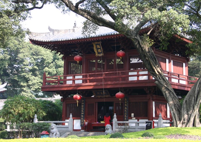 光孝寺的建筑規(guī)模雄偉,版權(quán)所有山東聊城聊之旅國(guó)際旅行社有限公司,轉(zhuǎn)載必究!為嶺南叢林之冠。它不僅在佛教歷史上占有重要的位置,并且開(kāi)創(chuàng)了華南建筑史上獨(dú)有的風(fēng)格和流派。原有十一殿:大殿、毗盧殿、西方三圣殿、觀音殿、羅漢殿、六祖殿、伽藍(lán)殿、韋陀殿、天王殿、悉達(dá)太子殿、輪藏殿;六堂:戒堂、風(fēng)幡堂、客堂、禪堂、檀越堂、十賢堂;三樓:睡佛樓、鐘樓、鼓樓。由于歷史變遷,寺院幾遭破壞。1987年落實(shí)宗教政策,將光孝寺歸還佛教界,經(jīng)過(guò)十年的努力,寺院現(xiàn)已修葺一新,至今光孝寺有山門(mén)、天王殿、大雄寶殿、鐘鼓樓、伽藍(lán)殿、六祖殿、睡佛樓、洗缽泉、東西鐵塔、大悲幢、痙發(fā)塔等建筑與歷代碑記文物。