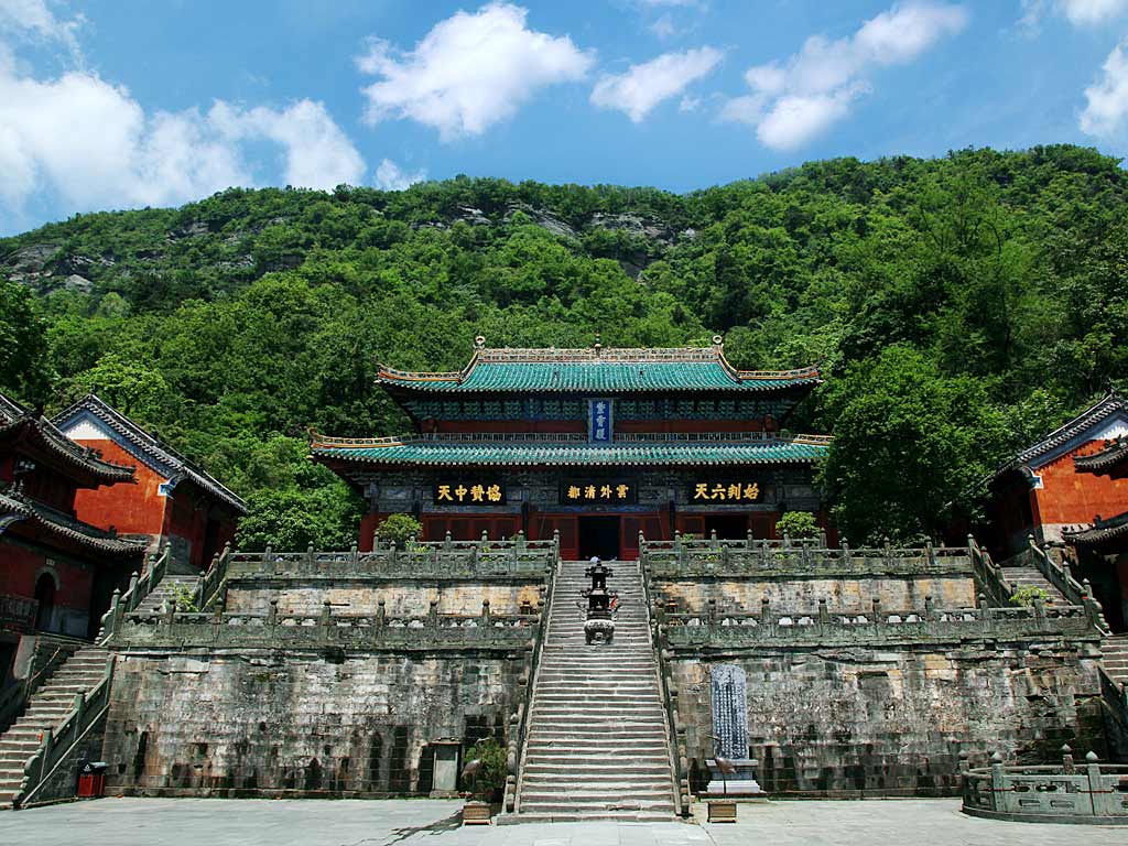 位于天柱峰東南麓約10公里,垂直距離1350米,分為上觀、中觀、下觀。在元代時,稱為“瓊臺宮”。明清時修葺擴(kuò)建有24座道院,廟房數(shù)百間。至清咸豐六年(1856年),毀于兵火?,F(xiàn)已修復(fù)部分廟房。該處系武當(dāng)山客運(yùn)索道的起始點(diǎn)。版權(quán)所有聊城聊之旅旅行社有限公司,轉(zhuǎn)載必究!已成為重要的游客集散地。 紫霄宮:紫霄宮背依展旗峰;面對照壁、三臺、五老、蠟燭、落帽、香爐諸峰;右為雷神洞;左為禹跡池、寶珠峰。周圍山巒天然形成一把二龍戲珠的寶椅,明永樂皇帝封之為“紫霄福地”。
