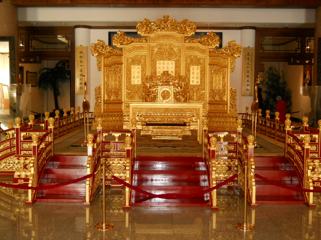 中國紫檀博物館展廳面積9569平方米。設(shè)有中央大廳、陳列廳、會議廳、貴賓廳、多功能廳及臨時(shí)展廳等,在這里您可以欣賞到:陳麗華館長積數(shù)十年珍藏的明清家具陳列展示;有近30年來陳麗華館長精心指導(dǎo)制作的傳統(tǒng)家具精品展示;有佛教文化藝術(shù)品展示;有傳統(tǒng)家具材料、造型、結(jié)構(gòu)展示;雕刻工藝展示;另外在這里你還可以領(lǐng)略到微縮的中國古建筑景觀:故宮的角樓,紫禁城御花園中的千秋亭與萬春亭,盡顯皇家氣派;山西五臺山龍泉寺牌坊,320條蛟龍姿態(tài)各異,精湛的圓雕、浮雕、透雕。這幅長32.4米、寬1.77米的木雕《清明上河圖》和高3米的紫檀木雕紫禁城角樓、御花園萬春亭、千秋亭模型四件傳世佳作,組成了鎮(zhèn)館之寶。