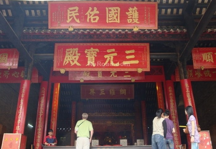 三元殿中以正月十五的上元誕最為熱鬧隆重。一早,來自四面八方的善信香客便蜂擁而來,聚集三元宮門前,希望能燒“頭柱香”,獲得天官保佑賜福。農(nóng)歷七月十五是中元誕,是赦免人間罪惡的日子。當天又是人頭涌涌,來進香禮拜者絡(luò)繹不絕。十月十五的下元誕是三元誕中最后一個誕日,是下元水官的誕辰。道教認為這天是水官救難解厄運的日子,同樣有許多善男信女們聚集到三元官來朝拜三元大帝。