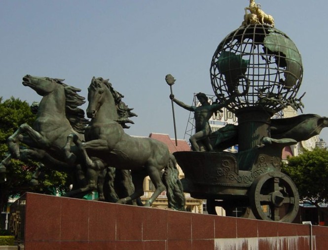 時(shí)代廣場可容納2.5萬人,四周環(huán)列四大文明古國的藝術(shù)雕塑造景和12位世界科技文化名人的銅像。中心舞臺可旋轉(zhuǎn)、升降變化,3個(gè)拱形方柱,充滿現(xiàn)實(shí)主義的建筑風(fēng)格。每當(dāng)夜幕降臨,這里將上演一臺由500名中外演員參演、氣勢壯觀的大型舞蹈《戰(zhàn)王與女神》或具有異國情調(diào)的《美國百老匯風(fēng)情---今夜狂歡》。其藝術(shù)燈光和艷麗的空中裝飾達(dá)3萬平方米,加之2500平方米的音樂噴泉和800平方米的水幕電影,形成了多姿多彩、奇幻無窮的舞臺背景。充滿浪漫色彩的巴黎歌劇院,設(shè)有750個(gè)座席,一臺以《五羊神女的夢幻》為主題的艷麗之舞,令游人如癡如醉。古希臘劇場的大馬戲、雜技和競技、斗雞斗羊表演,時(shí)而令人驚心動魄,時(shí)而讓人捧腹大笑。英國劇場表演的歐洲各國的宮廷舞、爵士樂、輕歌劇,使游人領(lǐng)略到歐陸風(fēng)情及其藝術(shù)魅力。阿拉伯劇場以《天方夜譚》故事為主線創(chuàng)作的多種形式、多種類型的藝術(shù)表演,向游人展現(xiàn)了阿拉伯文化特色和特有的風(fēng)土人情。日本劇場的柔道、摔跤、武術(shù)和現(xiàn)代舞表演,則給人以耳目一新的感覺。