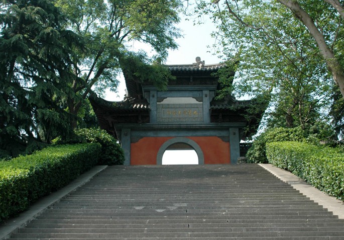 享殿后是墓區(qū),通往墓臺的石板神道為古松掩映,旁立4對石人石獸,粗獷簡約,典型的明代雕塑風格。墓臺四周有仿白玉欄桿,中立“西楚霸王衣冠家”碑石一方。墓成橢圓狀,左側有地下墓道。