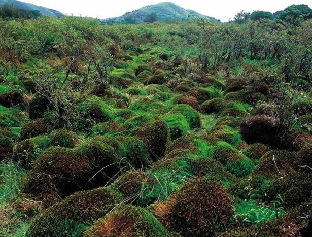 滕古田自然保護區(qū)還有許多別處難以見到的奇觀,如古樹的大板根現(xiàn)象,一棵三人才能合抱的古樹生出五支刀一樣的板根露出地面,幾個人坐在板根之間誰也看不著誰,這就是亞熱帶森林特有的景觀。在這里,還能夠欣賞到亞熱帶地區(qū)罕見的成片紅皮糙果茶純林,樹干挺拔崔嵬,葉片寬大蔥郁,顯示出一種拙樸、雄壯的原始之美。在行至古田的山路上,還有一種長在大石旁邊名叫“過崗龍”的藤,藤的頭部直徑有70多厘米,三支分藤匍匐攀沿于兩座山頭,總長達400多米。古田保護區(qū)還有水流飛簾倒卷的水簾下瀑布、頭沉出水處的沉水河等頗有欣賞價值的自然景觀。