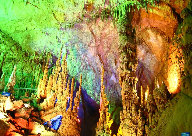 織金洞原名打雞洞,位于貴州省織金縣城東北23公里處的官寨鄉(xiāng),距省城貴陽120公里。1980年4月,織金縣人民政府組織的旅游資源勘察隊發(fā)現(xiàn)此洞。它是一個多層次、多類型的溶洞,洞長6.6公里,最寬處175米,相對高差150多米,全洞容積達500萬立方米,空間寬闊,有上、中、下三層,洞內(nèi)有40多種巖溶堆積物,顯示了溶洞的一些主要形態(tài)類別。