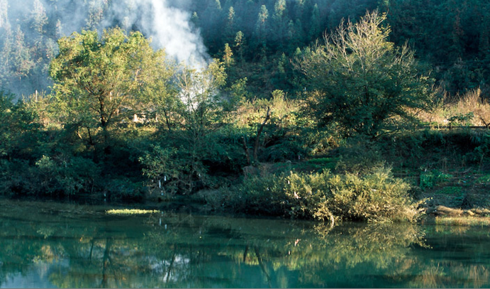 大山村有王村、李村和洪村三個村民組,其中王村所在的地方尤為奇特,他們倚山結(jié)廬,世代以種茶為生。村口一棵甜櫧,680年,蔥蘢如蓋。村子四面環(huán)山,像安臥在搖床里的嬰兒。東南面有一叢古樹,天然一處入風(fēng)口,光線也通透,遠處層巒疊嶂,云霧常年繚繞,而西北面則有一個天然的出風(fēng)口,我們先前感受到的暖流氣息,很可能就是從這個出口散出去的。