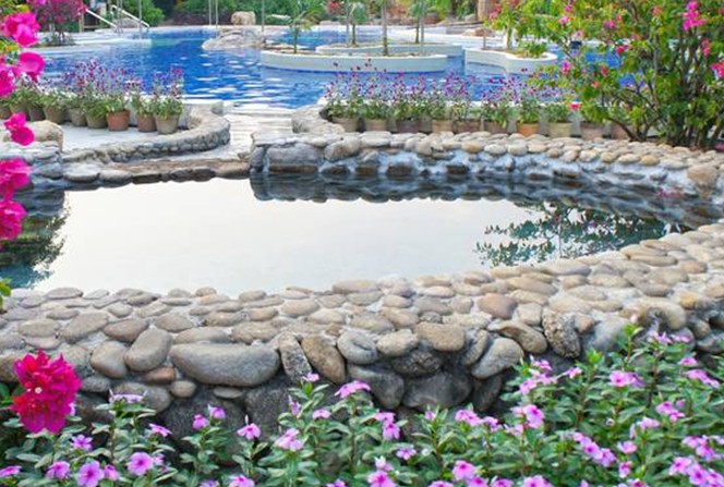 金山溫泉最引人入勝之處在于每天將2800多立方米、高達(dá)85℃的溫泉水從室內(nèi)引出到室外,開辟了22個(gè)大小不一的泳池,總面積達(dá)到8000平方米,共建有22個(gè)大小不一的溫泉泳池和28個(gè)日式溫泉池。日式溫泉池按溫度分為高溫池、常溫池、冷水池;按功能分為理療池、娛樂池、通用池。在1號(hào)池中,水溫達(dá)70-80℃。