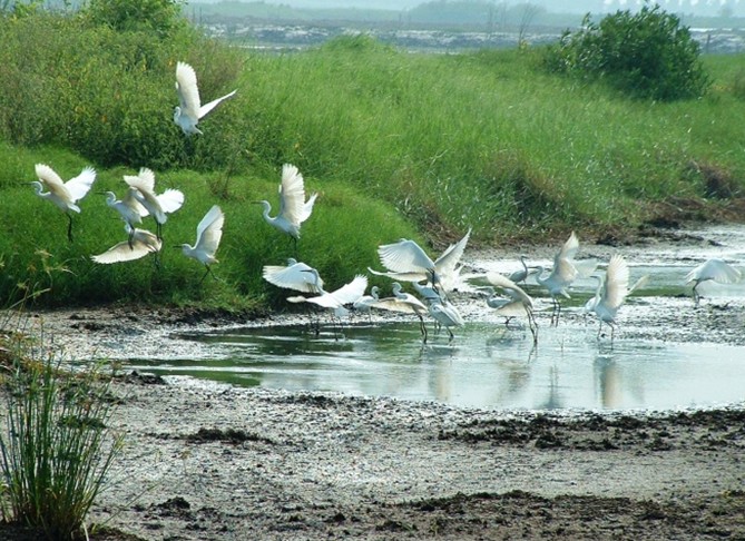 新會(huì)銀湖灣阡陌縱橫,水網(wǎng)交織,藍(lán)天與綠洲互相輝映,融江、海、湖、田、山、水于一身,有著其他地方無可比擬的生態(tài)旅游特色。放眼望去,在綠油油的田野中、圍堤上,傲立著幾棵高大的木棉,紅艷艷的木棉花與周圍的綠樹交織成一幅紅綠般配的鄉(xiāng)土美景。果園里彌漫著陣陣濃郁的芳香,那濃香撲鼻的,便是陽山桔的花;房前屋后的桔樹,開滿了桔花,遠(yuǎn)遠(yuǎn)望去,樹冠上仿佛堆了一層厚厚的白雪,到處是桔花的清香。