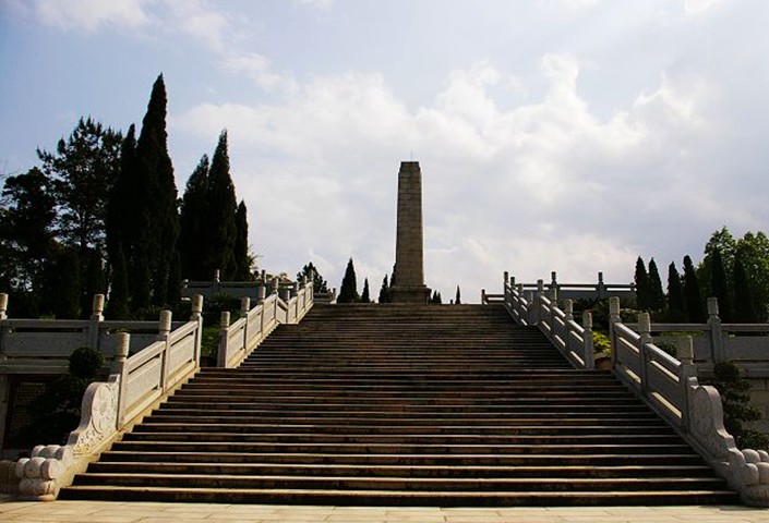 來到筆枝山頂,“八一”南昌起義軍三河壩戰(zhàn)役烈士紀(jì)念碑就展現(xiàn)在我們面前。這座山,居高臨江,地勢險(xiǎn)要,易守難攻,總面積達(dá)18萬平方米,占據(jù)了筆枝山就等于控制了韓江的交通。溯汀江北上,可到福建長汀、上杭;沿梅江西航可到江西贛南一帶;沿梅潭河?xùn)|往可到福建閩南的九峰等地;順韓江而下直通潮州、汕頭。舊稱“西通兩粵、北達(dá)兩京”,大家說筆枝山的位置重不重要???“八一”起義軍三河壩戰(zhàn)役便是在這座山上激烈開展的。為了紀(jì)念革命先輩的豐功偉績和這次戰(zhàn)役犧牲的烈士,1963年12月廣東省人民政府撥款興建了紀(jì)念碑,碑高15米,用35種規(guī)格的343塊密紋花崗石砌建而成。碑正面鐫刻著朱德同志的親筆題字:“八一”起義軍三河壩戰(zhàn)役烈士紀(jì)念碑。碑座上刻著第二十五師師長周士第撰寫的碑文。如今“八一”起義軍三河壩戰(zhàn)役烈士紀(jì)念碑已被列為國家級革命烈士紀(jì)念遺址重點(diǎn)保護(hù)單位、省級文物保護(hù)單位,并成為梅州市、大埔縣愛國主義教育、革命傳統(tǒng)教育的基地。