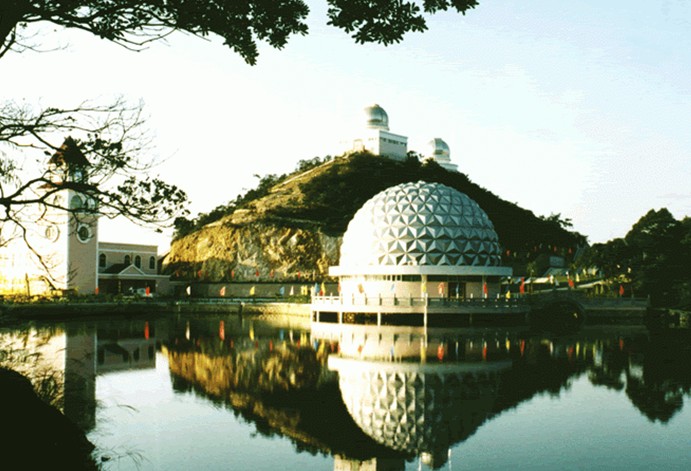 天文臺設(shè)有天圓觀測室、地方觀測定和太陽觀測室。擁有7米直徑天文圓頂?shù)奶靾A觀測室,擺設(shè)了 21厘米口徑的折軸折射式望遠(yuǎn)鏡,具有目視觀測、照相觀測、CCD觀測功能,可進(jìn)行對月亮、行星、小行星、彗星、流星、星云、星團(tuán)、變星的觀測。地方觀測定設(shè)有7米直徑天文圓頂,40厘米口徑的智能型折反射式望遠(yuǎn)鏡。太陽觀測室擺設(shè)有 30厘米口徑的太陽望遠(yuǎn)鏡,將太陽像引入太陽觀測室,展示直徑1米的白光太陽像,參觀者可直接看到太陽像上的黑子移動和變化,展示寬帶太陽光譜像及神秘的太陽色球像。