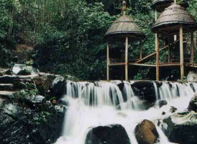 大旭山飛瀑群景區(qū),山高林深、溪水清冽、地勢起伏、瀑布成群,空氣特別清新。本著追求“自然”的宗旨,上山路徑和供游人觀瀑的亭榭都與周圍環(huán)境相協(xié)調,亭榭都用樹皮、竹木構建,看似簡單,卻別有韻致。