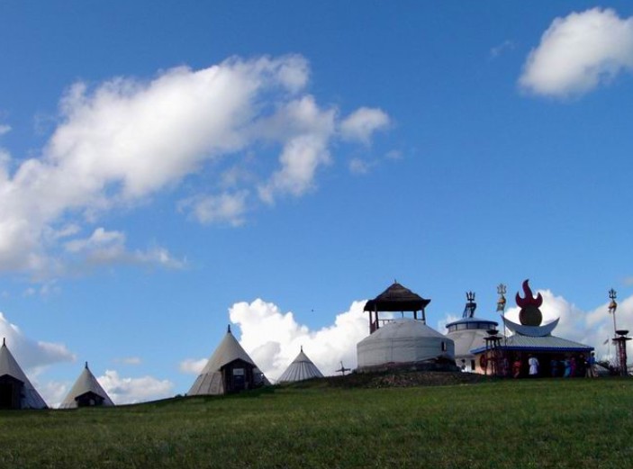 金帳汗蒙古部落是呼倫貝爾唯一以游牧部落為景觀的旅游景點,位于呼倫貝爾草原“中國第一曲水”的莫爾格勒河畔。這里是中外馳名的天然牧場。中國歷史上許多北方旅游牧民族部曾在這里游牧,繁衍生息。十二世紀末至十三世紀初,一代天驕成吉思汗曾在這里厲兵秣馬,與各部落爭雄,最終占據(jù)了呼倫貝爾草原。金帳汗部落景點的布局,就是當年成吉思汗行帳的縮影和再現(xiàn)。每逢夏季,陳巴爾虎旗走“放特爾”的蒙古族和鄂溫克族的牧民們便在這山清水秀、水草豐美的所在地,自然形成一個游牧部落群體。藍天白云,彎彎河水,茵茵綠草,群群牛羊,點點氈房,裊裊炊煙,使這里成為世界少有的游牧圣地。