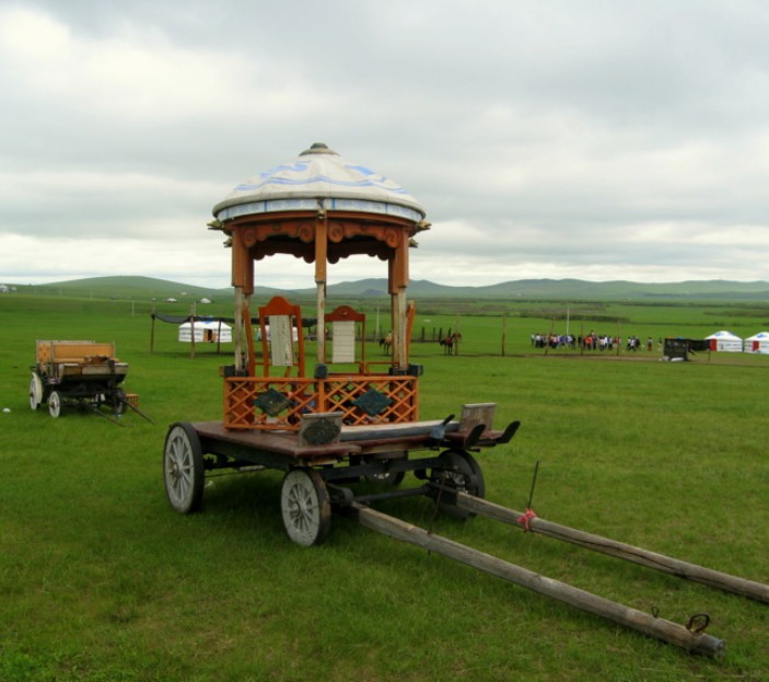 第1天:抵海拉爾區(qū),在海拉爾內(nèi)觀光,安排住宿。第2天:早餐后赴陳巴爾虎旗金帳汗旅游部落,下馬酒、祭敖包、觀摔跤、套馬表演,著民族服裝拍照,品嘗蒙古族風味餐——手扒肉,乘勒勒車,騎馬游草原,觀民族歌舞,篝火晚會,返市。
