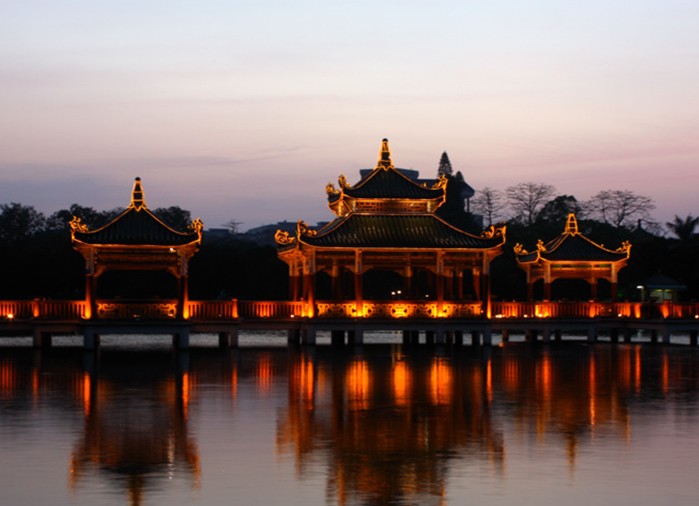 這是1986年建成開放的新景點(diǎn)。它采用中國庭園設(shè)計(jì)手法,庭廊相接,曲折回環(huán)。館中陳列著各種新奇花卉和盆景。這是一個(gè)小型花苑,如果對(duì)盆景有興趣的游客,在這里可以欣賞到很多各具特色的盆景,在“縮景為寸”的天地中領(lǐng)略到各處大自然的美景。宮苑里一年四季鮮花盛開,有不少是熱帶或寒帶才能生長開花的品種,所以這里又是一個(gè)鮮花鑒賞的新天地。這座宮苑開放以來,每天都接待不少海內(nèi)外旅游團(tuán)體和個(gè)人,他們都稱贊說:“這是南國獨(dú)有的一條風(fēng)景線”。