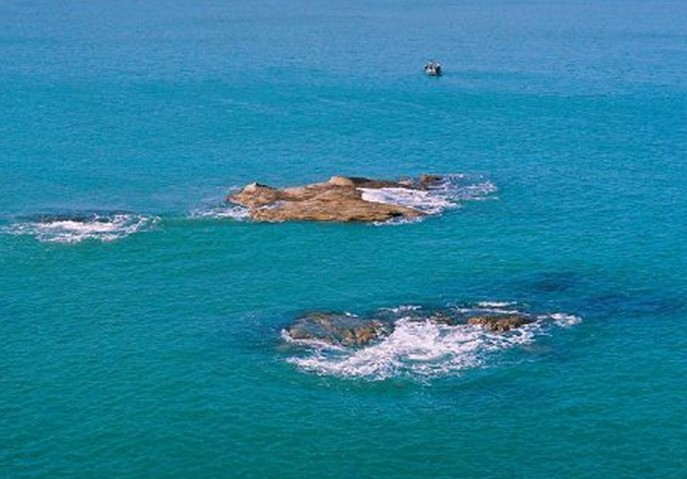 紅海灣與碣石灣交接處突入海的一個(gè)半島,素稱“粵東麒麟角”。又稱巖島,因?yàn)樗怯山笌r構(gòu)成的。海浪沖擊與自然風(fēng)化的鬼斧神工,造就了奇形怪狀、橫豎各異的礁巖,巨浪撲來,激起沖天浪柱,海浪從空跌落,化作浪花朵朵,猶如“卷起千堆雪”。面對(duì)這浩瀚碧海,目睹這潮來潮去、排浪巨變,不禁感到豁然開朗,豪氣萬千,漸漸忘卻枯容,拋開煩惱,頓悟“忍一時(shí)風(fēng)平浪靜,退一步海闊天空”的人生至理。