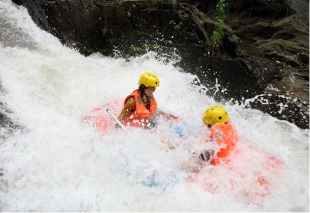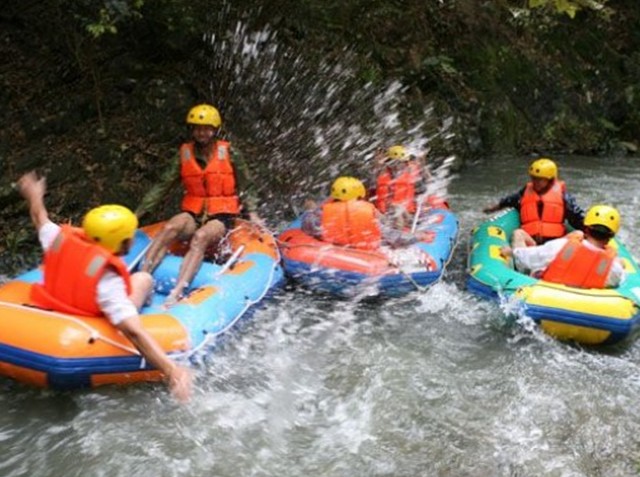 幽谷漂流河段長5公里,落差143米,全程漂流需時約90多分鐘,最驚險一處為“尖叫一線天”,其落差達(dá)10米,兩邊全是直聳入云的山石,僅能容一條漂流艇通過。夏日炎炎,遮天蔽日的綠樹在漂流河道上形成一道天然的屏障,讓身在其中的游人感覺無比清涼。漂流源頭隱藏在樹蔭深處,整個漂流地段都隱藏在原始森林中,這也是羊角山漂流又名"地窟漂流"的由來。版權(quán)所有山東聊城聊之旅國際旅行社有限公司,轉(zhuǎn)載必究!景區(qū)有符合安全規(guī)定的漂流河道、安全通道、防護(hù)欄、漂流艇等設(shè)施,提供救生衣、安全帽等設(shè)備;沿途有經(jīng)過專業(yè)培訓(xùn)的河道服務(wù)員、救生員、救護(hù)醫(yī)生提供專業(yè)的安全保障。景區(qū)投資“中國首創(chuàng)”的電子全程抓拍系統(tǒng),記錄下80多處游客快樂的一瞬間。