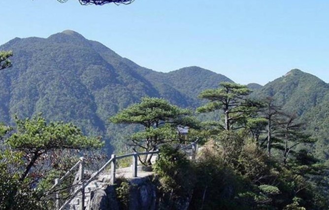亭下有山路通往主峰鳴弦峰,這里山勢險峻,最好有向?qū)阃?。在鳴弦峰上可以俯瞰英州大地,當(dāng)?shù)厝俗類墼谥仃柟?jié)的時候登臨此峰,既可以享受好風(fēng)光,又可以討到“壽比南山”的口彩。