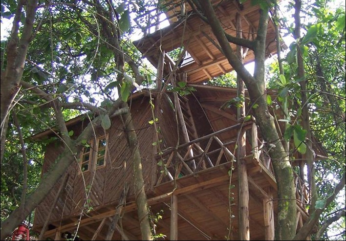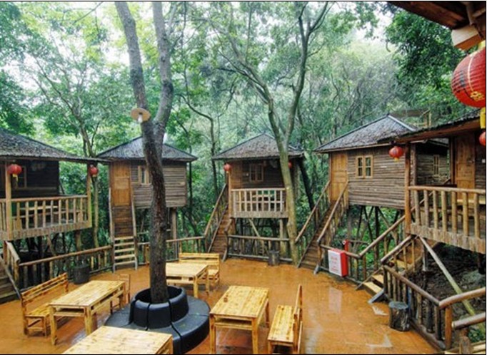 樹屋村,上古人類的家,是我們?nèi)祟愖嫦冗€未步出森林前賴以遮風(fēng)擋雨、防御野獸侵犯的窩。如今,九州驛站的樹屋村,在還原古人類居住文化的特征上,融入了現(xiàn)代的養(yǎng)生休閑文化而成為驛站的重要特征。身處樹屋村,最能感動人的除了古樸而又獨特的住宿設(shè)施外,感覺更多的是茂盛森林里的原始?xì)庀⒑屯恋氐姆枷?,與隔窗相望的雀鳥、昆蟲、松鼠等生命為伴才是建造樹屋、入住樹屋的真正意義。