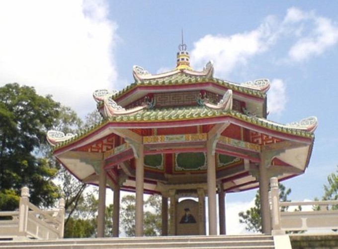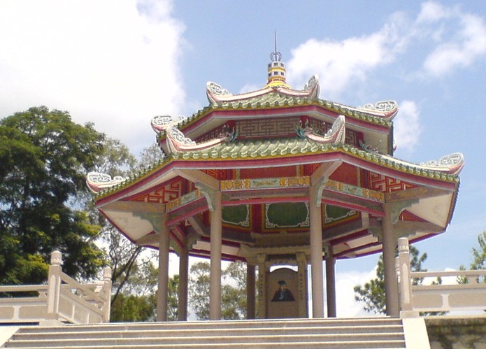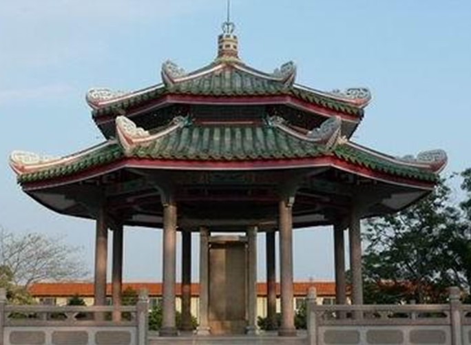 位于海豐縣城北面的五坡嶺上(編者注:彭湃中學(xué)后面),坐西北向東南,占地960平方米。前面分五層34級臺階,臺階上面是一幅長20米、寬13米的月臺,中心建一重檐攢尖頂,通高9米。亭內(nèi)后側(cè)再置一廡殿頂小石亭,高3.9米,內(nèi)豎一碑,高2.7米,寬0.9米,刻文天祥畫像。該亭為紀(jì)念南宋民族英雄文天祥當(dāng)年方飯五坡嶺時不幸被捕而建,故取名“方飯亭”。