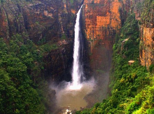 峽谷頂部地貌平緩,壺口瀑布從200多米的懸崖峭壁飛流直下,形成了氣勢(shì)磅礴的山水奇觀。另有一條坡度達(dá)50度斜角的1386級(jí)石階的“通天梯”可達(dá)谷底。峽谷溝壑縱橫,奇峰林立,古木參天,構(gòu)成一幅巧奪天工的山水畫卷。