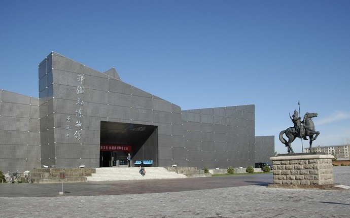 鄂溫克博物館正門前身著盔甲、手持武器騎在駿馬上的鄂溫克民族英雄海蘭察的銅像。揚蹄的駿馬、堅毅的表情顯示出了海蘭察將軍安內(nèi)如鷹、攘外似虎的赤膽忠心和高超的武藝及鄂溫克人的驍勇善戰(zhàn),保家愛國的精神。