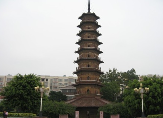 三影塔位于南雄市區(qū)永康路,建于北宋大中祥符二年(公元1009年),明代正統(tǒng)十一年(公元1446年)重修過。三影塔被列為全國重點文物保護單位。三影塔原名延祥寺塔,是延祥寺的一座建筑物,是廣東省僅有的有絕對年份可考的北宋早期磚塔。在光滑如鏡的寺壁上,竟然可以反射出三個塔影,一影向上,兩影倒懸,所以延祥寺塔被稱為三影塔。延祥寺內的一間廳堂也被稱為“三影堂”,可惜這座古寺廟早已毀掉,由于光線折射而出現(xiàn)的一塔三影的奇觀也隨之消失了。該塔為九層樓閣式磚塔,平面六角形,高50.2米,塔內設有木梯通向頂層,每層樓筑平座建欄桿,每上一層均須鉆出塔門,繞塔身一段,才能進入另一塔門,再向上攀登。