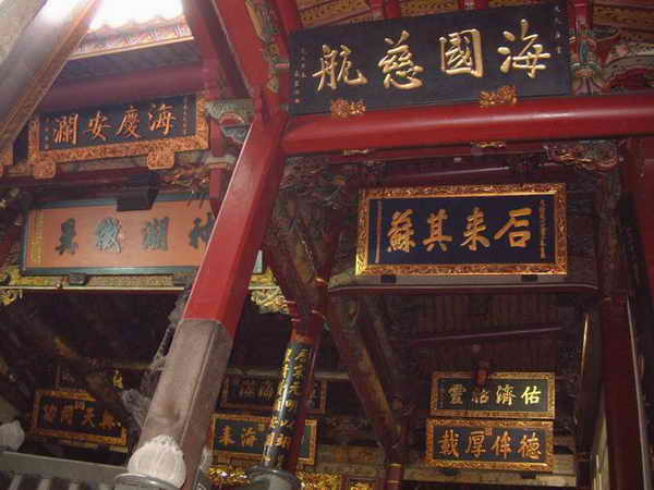 走進(jìn)臺南大天后宮時(shí),才發(fā)現(xiàn)大天后宮那富麗堂皇,威嚴(yán)顯赫的氣派,已極盡了宮殿建筑的豪華壯麗。由大門朝里望,透過三進(jìn)逐次升高的天井和房舍狹長的空間,可以遙見那香煙繚繞、金黃帷幕下的全身媽祖神像。廟宇堂皇壯觀,信徒眾多,香火鼎盛。由于受到歷代官府的整修和保護(hù),大天后宮內(nèi)文物保存較多。廟中神像佛像也多為名家雕塑,石雕、木雕的柱、窗、梁都有很高藝術(shù)價(jià)值。還有許多古碑、古匾、古聯(lián)等珍貴的文物,據(jù)說單單古匾就有200多塊,平時(shí)無法全部掛出來。最寶貴的是雍正皇帝所賜的“神昭海表”、咸豐皇帝的“德侔厚載”、光緒皇帝的“與天同功”等御筆匾。由此可見,大天后宮與普通天后宮、普通廟宇相比,簡直就有一個天上、一個地下的感覺。