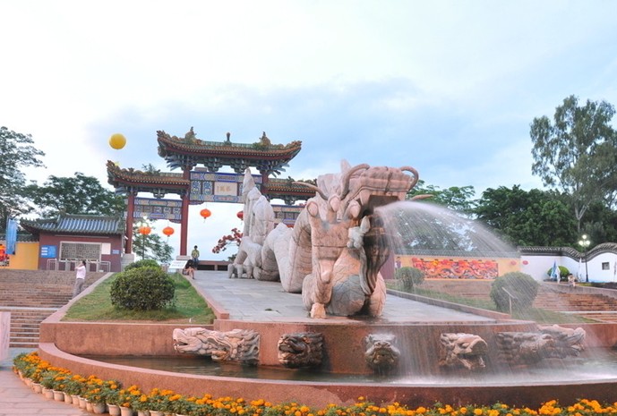 原龍崗鎮(zhèn)人民政府斥巨資,壘土萬斛,砌石千丈,雕梁畫棟,玉階朱廊,終于在椰風竹影中建成這傳奇的龍之家園。噴珠濺玉的石雕巨龍和泥金重彩的牌樓,在龍園大門組成第一道攝人心魄的風景線。園中美景目不暇接,雄渾壯觀的九龍透雕,峭拔古拙的建園碑和攤神柱。雍容典雅的五龍亭和琉璃牌坊,霞簇虹擁的回龍橋,巍峨莊嚴的龍王宮,佛語梵音的觀音閣,羅漢塔,長達五百米的東方巨龍為中心的龍文化廣場。河旁綠樹成蔭,橋下美人蕉似火,園中椰樹成蔭,芳草茵茵,亭閣走廊,悠揚古鐘,小巧桃園,蔥郁龍眼,一句話,美不勝收....每一處建筑,雕塑和園林,或氣勢磅礴,或構想奇妙,或獨具匠心,承傳著數(shù)千年龍文化對中國建筑、藝術、宗教、民俗的深遠影響。一登龍園氣勢恢弘的龍門,覽九龍壁,閱建園碑,游五龍亭,過回龍橋,穿如意洲,逛龍豐街,登羅漢塔,在梵音裊裊的觀音閣龍王宮焚香禮佛,可茗居品一壺烏龍茶,游泳場作一番蛟龍戲水,相思林歌一曲《龍的傳人》,或者去龍頭舞臺看俊男靚女演昨天的故事今天的傳奇。在龍園的花香綠意中,這時只覺一身凡塵盡洗,不經意間你就明白了:龍,對中國的建筑藝術、文化、宗教、民俗、政治的影響無處不在。