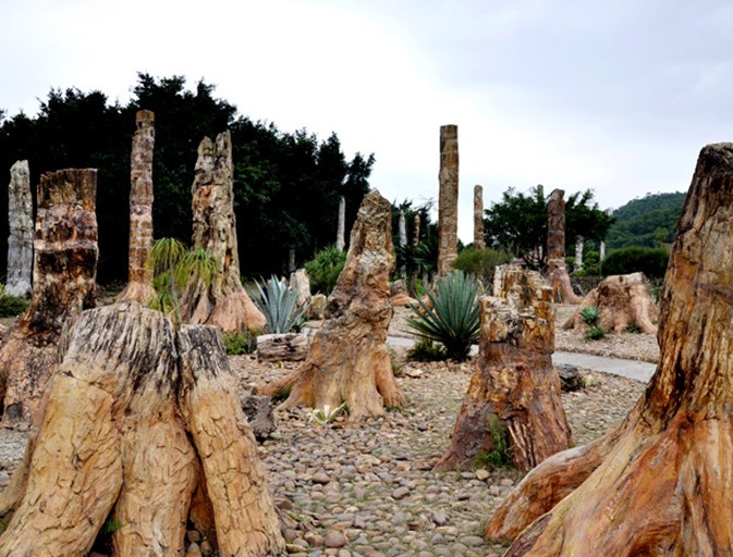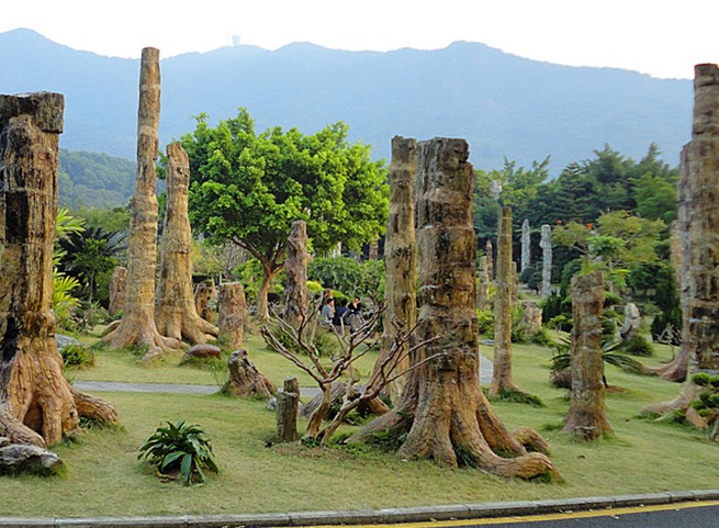 深圳仙湖化石森林籌建于1997年,占地30多畝,由400多株木化石聳立形成化石森林景觀。這些木化石主要從遼寧、新疆、內(nèi)蒙古等地引進(jìn)。木化石又稱硅化木,是石化了的樹木枝干化石。在距今一億五千萬(wàn)年前的中生代侏羅紀(jì),由于地殼運(yùn)動(dòng)或火山爆發(fā),古代森林瞬間被泥沙碎石或火山熔巖所掩埋,樹木中的有機(jī)質(zhì)逐漸為二氧化硅所取代,形成了與石頭一樣的硅化木。