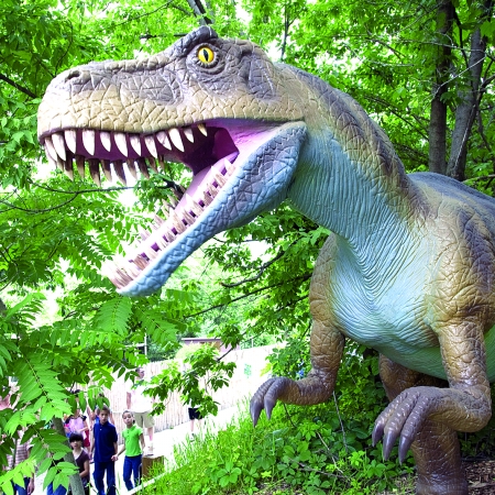 金鷺公司在鴕鳥養(yǎng)殖的基礎(chǔ)上,利用鴕鳥群這一獨(dú)特的景觀和鴕鳥較高的觀賞價(jià)值,開發(fā)了生態(tài)旅游業(yè),1999年12月被河南省旅游局正式批準(zhǔn)為“金鷺鴕鳥游樂園”旅游觀光景點(diǎn), 2000年4月正式對(duì)游客開放。聊城旅游網(wǎng)版權(quán)所有聊城聊之旅國際旅行社有限公司,轉(zhuǎn)載必究!走出了一條“以鴕鳥養(yǎng)殖帶動(dòng)旅游開發(fā),以旅游開發(fā)帶動(dòng)產(chǎn)品銷售”的新路子,園區(qū)先后投資興建了騎鳥場、踩蛋場、太空球、垂釣中心、滑草場、空中索道、人工湖、水上樂園、攀巖、彩彈射擊、峽谷漂流等200多個(gè)特色旅游娛樂項(xiàng)目。金鷺鴕鳥游樂園和北美最知名的恐龍展覽公司加拿大恐龍皇有限責(zé)任公司投資500萬美元興建了我國最大的恐龍科普基地。恐龍科普基地占地百余畝,位于鴕鳥園內(nèi), 40多只恐龍是根據(jù)已發(fā)現(xiàn)的恐龍化石,按原始大小仿真制造。這些形態(tài)各異、或兇猛或溫柔的仿真恐龍會(huì)動(dòng)會(huì)叫會(huì)呼吸,皮膚柔軟,肢體靈活,如同復(fù)活一般,栩栩如生地潛伏在鴕鳥園茂盛的樹叢中和水塘內(nèi),有的張牙舞爪,有的低沉吼叫,有的正在下蛋,有的噴水嬉戲。妙趣橫生的恐龍?zhí)矫刂靡欢〞?huì)讓您充滿驚奇與收獲,逼真的場景也會(huì)帶您穿越時(shí)空,夢幻般回到億萬年前的侏羅紀(jì)時(shí)代。