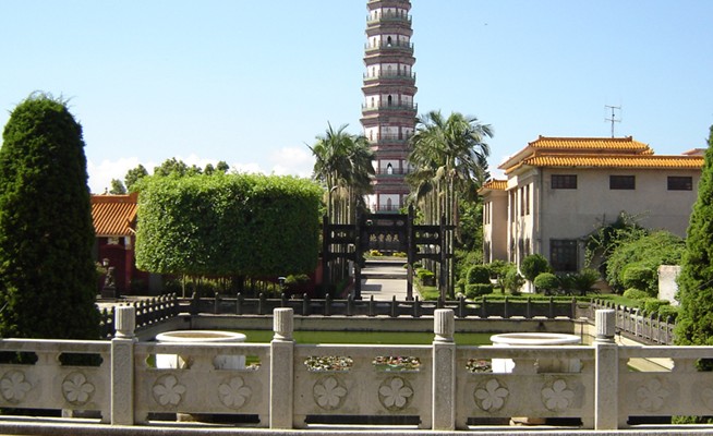 三元塔公園位于廣東省雷州市雷城鎮(zhèn)曲街4號(原雷城“南門頭)東側(cè),占地約三萬多平方米。因園內(nèi)有聞名遐邇的省級文物保護(hù)單位三元塔,故名。公園大門為一座紅頂,四柱,三間貼大理石的牌坊式建筑。”此園分前后區(qū)兩部分,前區(qū)為體育、娛樂活動場所;后區(qū)為文物古跡風(fēng)景區(qū)。一進(jìn)公園大門,首先映入眼簾的是幾棵四季常青的參天古榕。據(jù)專家鑒定這些古榕的樹齡均在二三百年以上,屬林業(yè)部門列為保護(hù)的古樹木。古榕南邊有一座由雷州市旅居加拿大的僑胞釋賢德博士和釋文泉法師捐資興建的”德泉益壽樓“。此樓共三層,建筑面積600多平方米,典雅寬敞,設(shè)備齊全,版權(quán)所有山東聊城聊之旅國際旅行社有限公司,轉(zhuǎn)載必究!為雷州市一處深受老人歡迎的娛樂活動中心。