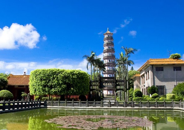 于明萬歷四十一年(1613年)元月興工,至萬歷四十三年(1615年)四月落成。初命名“文魁塔”,又稱“啟秀塔”。后因挖塔基時(shí)發(fā)現(xiàn)蛇卵三只,以以為是“三元及第”之兆,故改名為“三元塔”。在380多年前建筑工具簡陋的情況下,雷州人民僅用約兩年時(shí)間就建成一座如此雄偉壯麗的高層古塔,至今已經(jīng)經(jīng)歷了將近400年的風(fēng)雪滄桑,雷轟地震仍巋然屹立,充分顯示了雷州人民的聰明才智和驚人的創(chuàng)造力。此塔坐東向西,樓閣式磚木結(jié)構(gòu),用棱角牙子磚和線磚互相疊澀出檐,下大上小,逐層遞減,比例勻稱。檐上有平臺、外廊,繞以欄桿。八觚九級、內(nèi)樓17層、高57米。塔基為石刻須彌座。八面共嵌有23塊陽雕石刻,分別為“麟趾呈祥”、“鯉跳龍門”、“獅子戲球”、“三羊(陽)開泰”、“雙鳳朝陽”、“喜鵲練梅”等,線條粗獷,形態(tài)生動,富有民族特色和地方風(fēng)格,為明代石刻珍品。每層設(shè)真、假門,呈圭角形。真門對開相連通,利用塔壁為階梯由下而上,穿過塔心室,繞平座(塔廊)、南入北出、東進(jìn)西升、盤旋而上,可達(dá)極頂。三元塔建成后,雷郡形勝大為改觀,“鼎峙瓊南添一指,聯(lián)翩雁字豫題名”。 版權(quán)所有山東聊城聊之旅國際旅行社有限公司,轉(zhuǎn)載必究!后來“雁塔題名”成為雷陽八景之一。古往今來,不少騷人墨客、名宦顯貴慕名登臨,留下不少膾炙人口的詩文,其中明代海北南守道蔣光彥(福建晉江人,進(jìn)士)有詩贊道:
