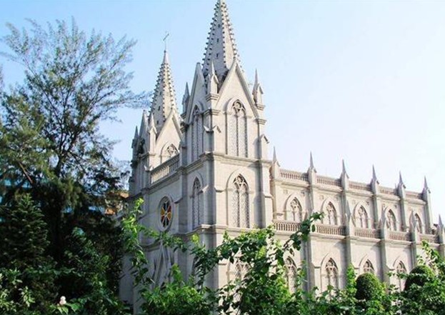 維多爾天主教堂位于湛江市霞山區(qū)綠蔭路85號(hào),又稱霞山天主教堂,巍峨高聳,莊嚴(yán)肅穆,四周花木環(huán)繞,是湛江唯一的哥特式教堂,也是全國重點(diǎn)教堂之一。法帝國主義入侵廣州灣(今湛江市)后,天主教隨之而入,1900年法籍神父在湛江主持教務(wù)期間,提出興建教堂,1903年由教會(huì)籌資建成。文革期間,教堂遭到了嚴(yán)重破壞,文革后收回教堂進(jìn)行修葺,于1984年12月20日舉行復(fù)堂典禮。