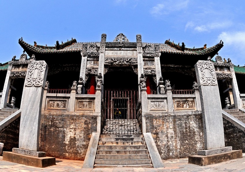 會(huì)館座北向南,聊城旅游網(wǎng)版權(quán)所有聊城聊之旅國(guó)際旅行社有限公司,轉(zhuǎn)載必究!占地面積約7750平方米,地面全部用一尺見(jiàn)方的青白石板鋪砌,現(xiàn)存殿、堂、樓、閣及各種建筑130余間。主體建筑由琉璃大照壁、懸鑒樓、大拜殿、春秋樓四部分組成,自南向北呈現(xiàn)中軸線式分布。前為琉璃照壁、鐵旗桿 、東西轅門和東西馬廄;其后為懸鑒樓、鐘鼓樓、東西廊房;再后為大拜殿、藥王殿、馬王殿;最后為春秋樓。布局嚴(yán)整,莊嚴(yán)肅穆。除后部“春秋樓”被毀外,其余保存尚好,是河南省古建筑中一個(gè)比較完整的建筑群,也是南陽(yáng)市面積較大、保存較為完整的古建筑群之一。會(huì)館的前部是巨大而又華麗的“二龍戲蛛”浮雕照壁,高20米,寬13米,聊城旅游網(wǎng)版權(quán)所有聊城聊之旅國(guó)際旅行社有限公司,轉(zhuǎn)載必究!仿北京“九龍壁”建造,用彩釉陶瓷大方磚砌成,透花雕龍,圖案精巧,構(gòu)圖藝術(shù),金碧輝煌。懸鑒樓,又名“八卦樓”,為會(huì)館之戲樓。樓高30米,面闊17米,進(jìn)深20米。建于嘉慶元年(1796年),重檐歇山式建筑,上下三層,翬飛斗拱,層層疊立;環(huán)樓上下,均有木、石雕刻;戧脊上飾以人物走獸,雕工精細(xì),玲瓏奇觀。樓兩側(cè)有鐘、鼓二樓作陪襯。鐘、鼓二樓皆用十六根木柱支撐;東樓懸大鐘,西樓懸大鼓。鐘、鼓樓兩側(cè),有東西轅門和馬廄。大拜殿為會(huì)館的中心,樓高34米,面闊23米,進(jìn)深45米。建于同治八年(1869年),大殿建在高臺(tái)之上,為重檐廡殿式建筑。后殿原有“暖閣”,內(nèi)有關(guān)羽牌位。前殿為宴會(huì)廳,雕梁畫(huà)棟,富麗堂皇。殿檐下木刻“西游記”、“封神榜”等圖案,雕工精巧,形象逼真。殿前兩側(cè),各有大石雕,高五余尺,采用淺浮雕與透雕相結(jié)合的雕法,右壁石刻“漁樵耕讀”,山水亭臺(tái)、人物、鳥(niǎo)獸,雕琢精細(xì),布局嚴(yán)謹(jǐn);左壁石刻“十八學(xué)士朝瀛洲”,雕造工巧,內(nèi)容豐富,形象生動(dòng)。殿下所筑高臺(tái),約四余米,磚、石包砌,周圍以石欄,中立一石雕牌坊,精雕細(xì)鏤“金龍纏玉柱”、“文武獅子”、“八愛(ài)圖”;牌坊下為“九龍口”,斜鋪云龍石雕;牌坊兩旁立門樓,筑臺(tái)階各十三級(jí)。大殿左右筑以陪殿,東為藥王殿,西為馬王殿;陪殿之前,均建有東、西廊房各十三間,把大拜殿烘托得更加雄偉、肅穆、壯觀。會(huì)館的建筑結(jié)構(gòu)和雕刻藝術(shù),集中體現(xiàn)了我國(guó)古代建筑藝術(shù)和獨(dú)特風(fēng)格,被譽(yù)為我國(guó)的古建明珠,是河南省保存較完整的一處古建筑群,成為著名的游覽勝地,1988年被列為國(guó)家重點(diǎn)文物保護(hù)單位。